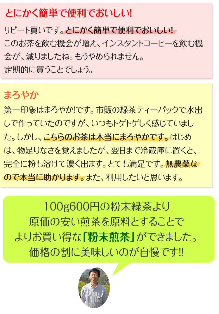 粉末煎茶100g×2袋メール便送料無料(同梱不可)無農薬・無添加・粉末茶・粉末緑茶・破砕茶・静岡県産・工場直売・水車むら農園 1000円ポッキリ