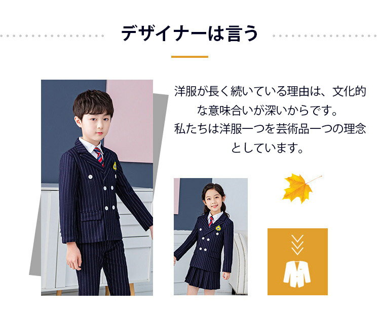 商品紹介 入学式 スーツ 男の子 女の子 子供服 子供スーツ フォーマルウエア カラー 写真通り 素材 ポリエステル セット内容 男の子6点セット:スーツ+ベスト+ズボン+ワイシャツ+布の章+ネクタイ 女の子7点セット:スーツ+ベスト+スカート+ワイシャツ+布の章+ネクタイ+靴下 (※他は商品に含まれません) サイズ スーツ 90 着丈39.6cm 肩幅27.8cm バスト63cm 100 着丈42.6cm 肩幅28.8cm バスト66cm 110 着丈45.6cm 肩幅29.8cm バスト69cm 120 着丈48.6cm 肩幅31cm バスト73cm 130 着丈51.6cm 肩幅32.2cm バスト77cm 140 着丈55.6cm 肩幅33.4cm バスト81cm 150 着丈58.6cm 肩幅34.6cm バスト85cm スカート 90 ウェスト42cm スカート丈28cm 100 ウェスト44cm スカート丈29.5cm 110 ウェスト46cm スカート丈31cm 120 ウェスト48cm スカート丈32.5cm 130 ウェスト51cm スカート丈34cm 140 ウェスト54cm スカート丈35.5cm 150 ウェスト57cm スカート丈37cm ズボン 90 ズボン丈57.7cm ウェスト42cm ヒップ64.6cm 100 ズボン丈61.7cm ウェスト44cm ヒップ67.8cm 110 ズボン丈65.7cm ウェスト46cm ヒップ71cm 120 ズボン丈69.7cm ウェスト48cm ヒップ76cm 130 ズボン丈75cm ウェスト51cm ヒップ81cm 140 ズボン丈80.3cm ウェスト54cm ヒップ86cm 150 ズボン丈85.6cm ウェスト57cm ヒップ91cm サイズ表 90 参考身長85-95cm 適合体重10-13kg 適合年齢2-3歳 100 参考身長95-105cm 適合体重13-15kg 適合年齢3-4歳 110 参考身長105-115cm 適合体重15-18kg 適合年齢4-5歳 120 参考身長115-125cm 適合体重18-21kg 適合年齢5-6歳 130 参考身長125-135cm 適合体重21-25kg 適合年齢6-7歳 140 参考身長135-145cm 適合体重25-29kg 適合年齢7-8歳 150 参考身長145-155cm 適合体重29-32kg 適合年齢8-9歳 160 参考身長155-165cm 適合体重32-35kg 適合年齢9-10歳 170 参考身長165-175cm 適合体重35-38kg 適合年齢10-11歳 製作元 中国(チャイナ) 洗濯表示 ※装飾品の中に安全ピンを使用したものがございますので、 ご着用やお洗濯等のお取り扱いに十分ご注意ください。