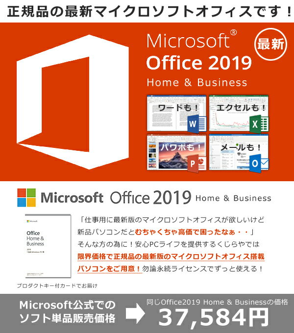 Microsoft Office2019 Home&Business搭載ワード・エクセル・パワーポイントが使えます※このページの商品です 59,999円 検索用キーワード 中古パソコン,ノートパソコン,ノートパソコン 中古,中古ノート,ノートPC,リフレッシュPC,再生PC,8GBメモリ,Corei5,SSD,240GB,ハイスペック,永久サポート,大画面,高性能,DVDマルチ,wi-fi,usb,word,excel,powerpoint,office,microsoft,microsoftoffice,windowsインストール時に困ったらすぐに当店にご連絡ください♪