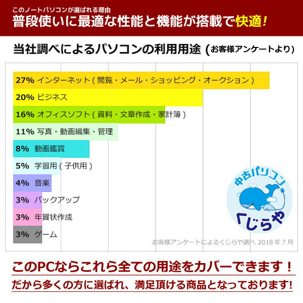 ベースとなるパソコンも8GBメモリにCorei5で爆速SSDで大満足間違いなし! 「買ってからも安心」、全力サポートの中古パソコンくじらやで是非ご検討下さい。