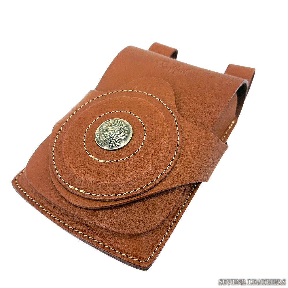 21mmオリジナルコンチョが装飾されたレザーマルチポーチ、ベルトループが付いて腰下げできます。