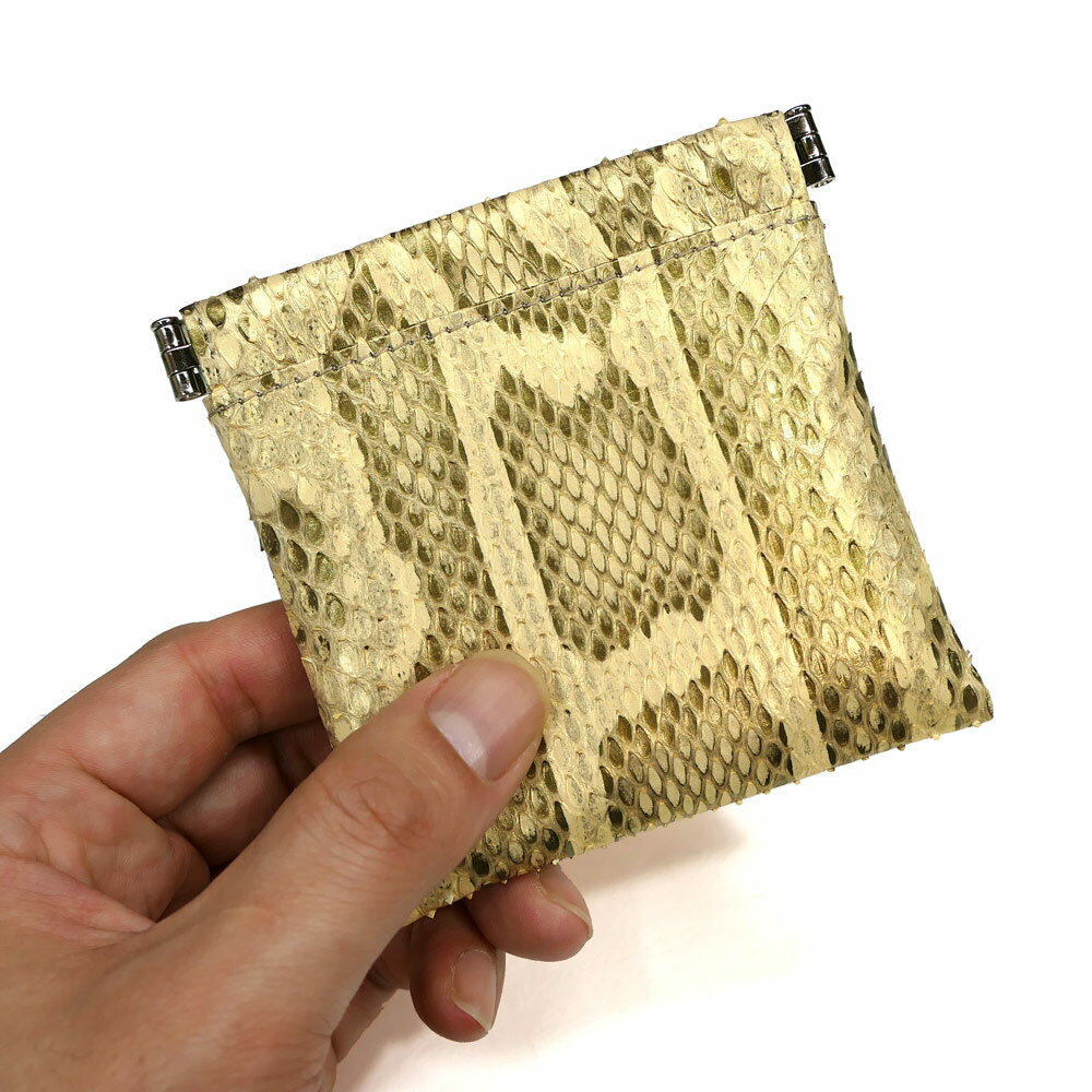バネ口 小物入れ 小銭入れ マルチケース ポケット付 本革 モラレスパイソン パイソン革 蛇革 ヘビ革 パール 全2色