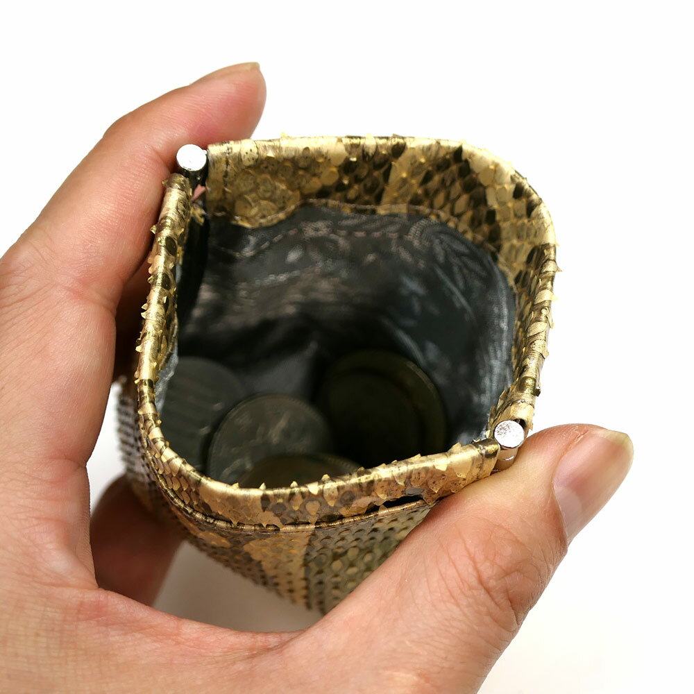 モラレスパイソン(ヘビ革)を使った工房オリジナルのバネ口小物入れ。
