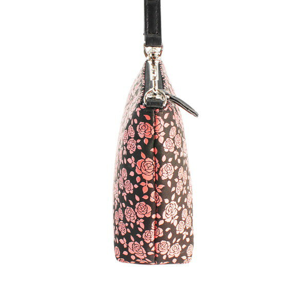 印伝 【甲州印伝 印傳屋 上原勇七】化粧ポーチ 手提げ【4411 ローズ小 黒地×ピンク漆】 女性用 レディース 鹿革 本革 レザー 花柄 ブランド 【YM02】